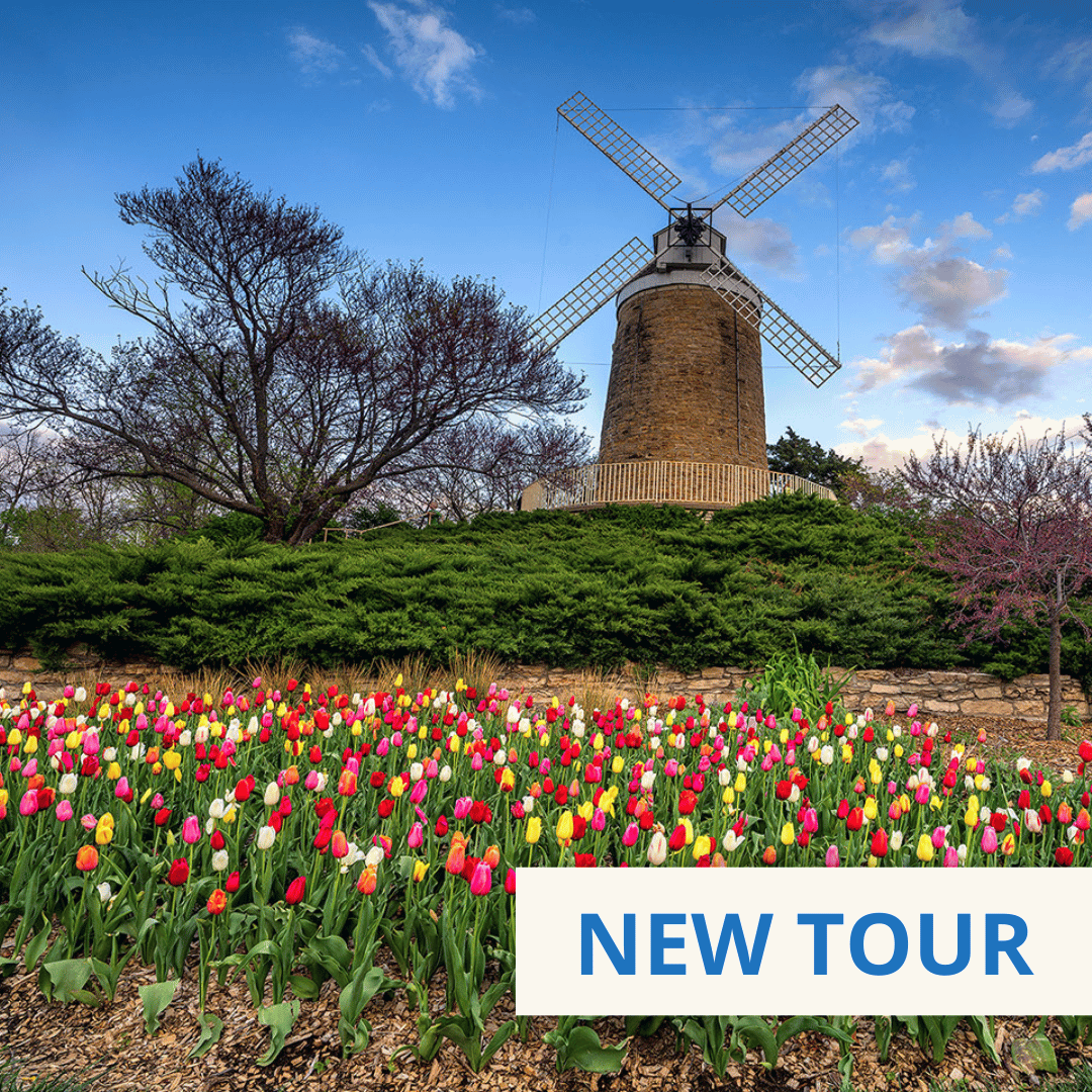 Awake to a kaleidoscope of colors and dive into the very heart of tulip country. Begin your morning at the Tulip Immersion Garden, where tens of thousands of blooms are arranged in raised beds so you can admire their beauty at eye level—a photographer’s dream and a breathtaking way to experience Holland’s signature flower. Continue on to Windmill Island Gardens, where the centuries-old De Zwaan windmill stands as both a cultural landmark and a working piece of history, surrounded by acres of vibrant tulip beds and traditional Dutch architecture. After a delicious lunch, explore Veldheer Tulip Gardens, home to millions of bulbs in bloom and demonstrations by skilled artisans hand-carving wooden shoes. Cap off the afternoon at Nelis’ Dutch Village, a recreated 19th-century town complete with canals, rides, shops, and lively folk demonstrations that bring Dutch traditions to life. This evening, return to Holland and enjoy free time to relax, shop, or savor dinner on your own before tomorrow’s adventures. (B)